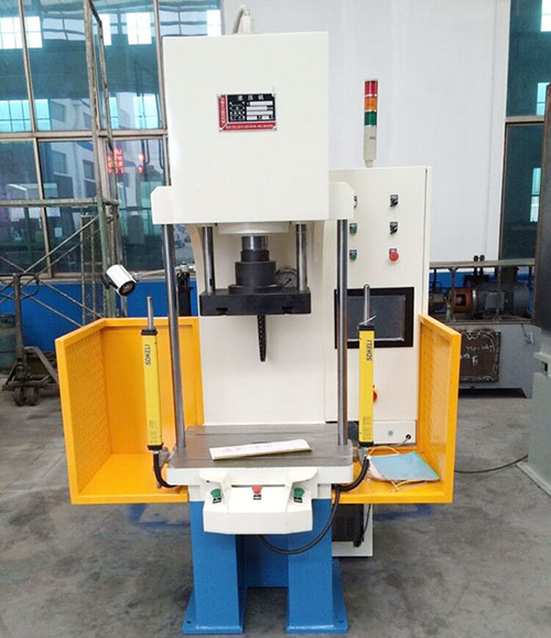 2、伺服壓力機液壓缸有混入氣體而發(fā)生的低速匍匐。這種狀況可通過重復(fù)運轉(zhuǎn)液壓缸到達排氣的意圖,必要時在管路或液壓缸的兩腔設(shè)置排氣裝置,在四柱壓力機液壓體系作業(yè)時進行排氣。